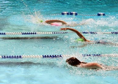 After picking up our tubes we came home and decided that instead of going for a bike ride we would go spend some time at the new Penticton community center. This gigantic complex house is a huge pool complete with waterslides rope swings and a huge geriatric tank. And by that time mean the water in this pool is about 92° There's huge water features with a lazy river lots of fun as well as a huge hot tub steam room etc. etc. Tri- girl and I sat down and got the business right away and headed over to the lap swimming area. They had three Lanes set out; slow, medium, and fast. Interestingly enough the fast lane was empty so we moved in. You may not believe it but just like the run swimming in a new poll is also fun. Since there is all these new things to see your swim always goes by very quickly and in no time at all we were back in the main pool with the family having fun playing chase. Grandma went down the waterslide and so did tri – girl. The kids and I even did some diving with dental bottom of the deep end and played hours of chase. When it was all said and done we spent two and half hours at the complex.